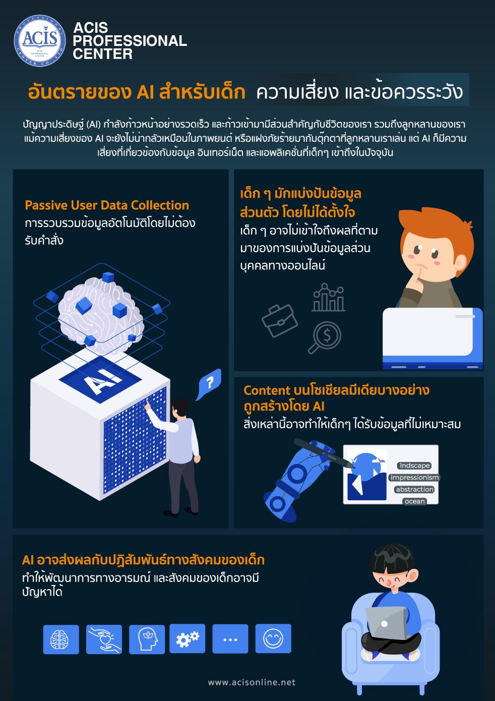 สรุปคือ เพื่อปกป้องเด็กๆ จากความเสี่ยงที่อาจเกิดขึ้นจาก AI บนโลกอินเตอร์เน็ตผู้ปกครอง และผู้ดูแลควรเฝ้าระวัง ติดตามการใช้ผลิตภัณฑ์ที่ควบคุมด้วย AI ของพวกเขาอย่างจริงจัง และพยายามพูดคุยกับลูกหลานให้เข้าใจเกี่ยวกับความเสี่ยงและประโยชน์ของ AI ไปด้วย นอกจากนี้ เราควรเริ่มสนับสนุนกฎระเบียบเพื่อควบคุมการใช้ AI ที่เข้มงวดมากขึ้น และควรให้การสนับสนุนโปรแกรมการศึกษาที่เน้นเรื่องความปลอดภัยทางอินเทอร์เน็ตสำหรับเด็ก ทั้งนี้เพื่อมีส่วนช่วยให้สภาพแวดล้อมทางดิจิทัลมีปลอดภัยมากยิ่งขึ้นได้.