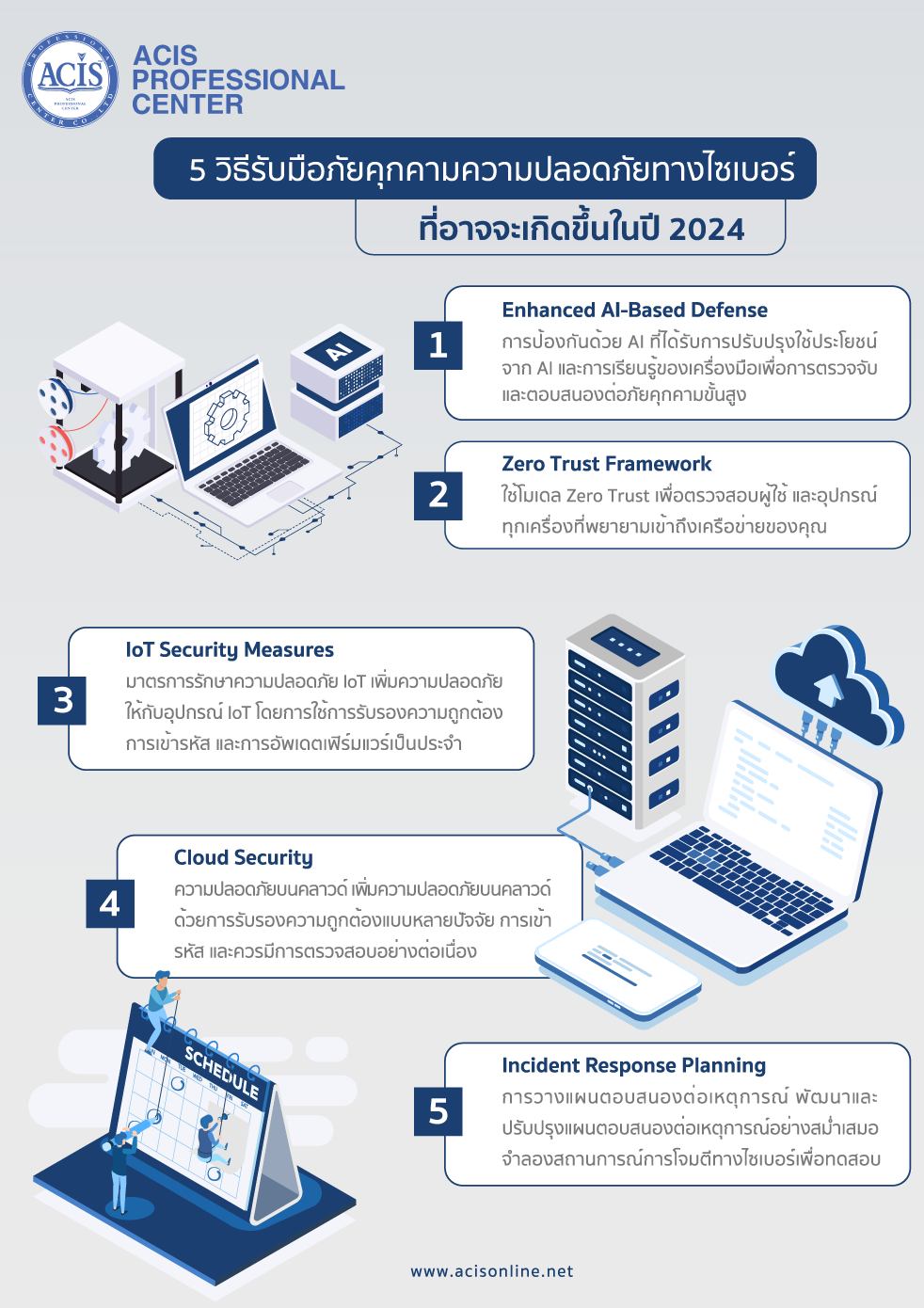 การจัดการภัยคุกคามความปลอดภัยทางไซเบอร์ในปี 2024 ควรดำเนินการเชิงรุกและการปรับตัวให้เข้ากับภัยคุกคามที่เปลี่ยนแปลงตลอดเวลา โดยวันนี้จะมาแนะนำ 5 วิธีรับมือภัยคุกคามความปลอดภัยทางไซเบอร์ที่อาจจะเกิดขึ้น.
