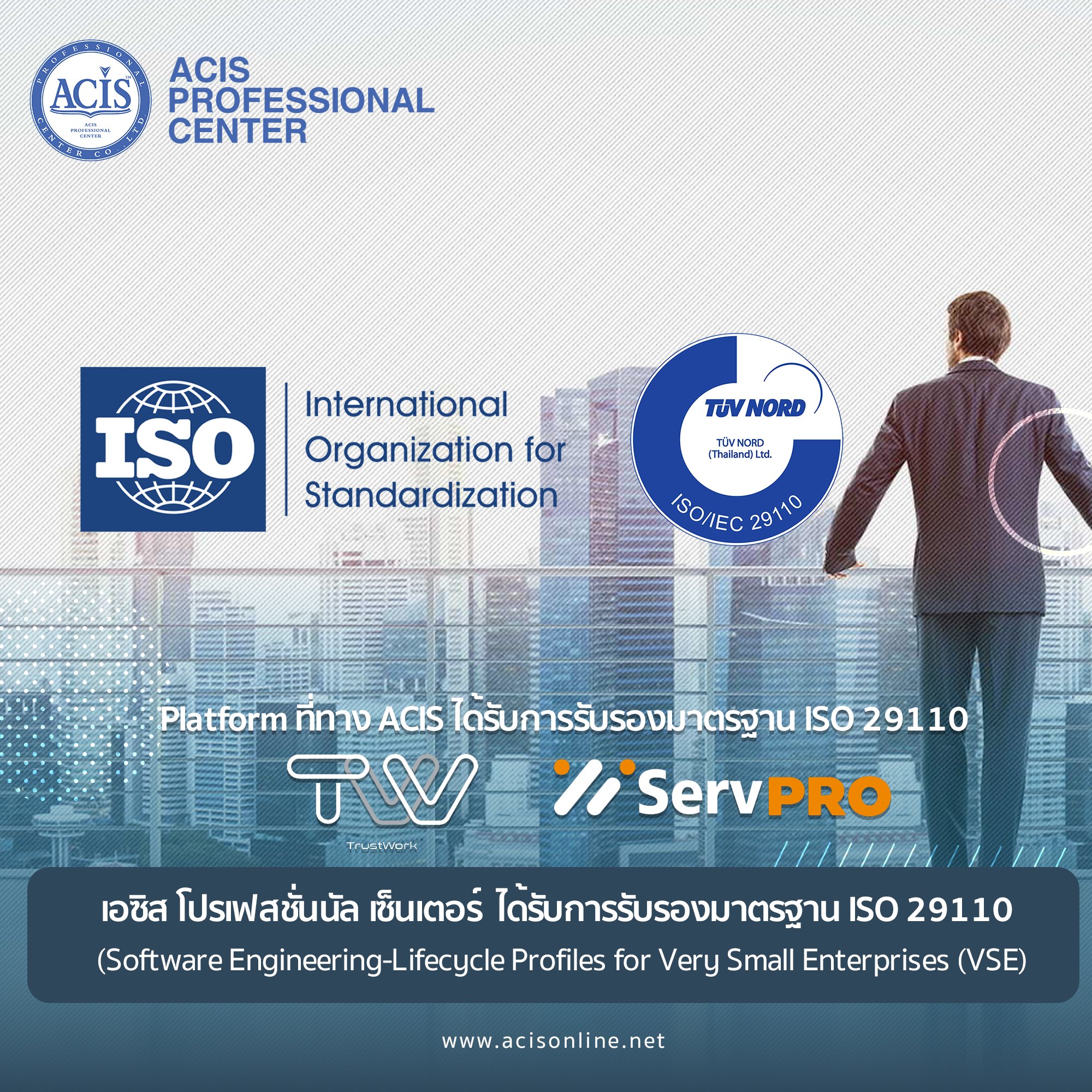 บริษัท เอซิส โปรเฟสชั่นนัล เซ็นเตอร์ ได้รับการรับรองมาตรฐาน ISO 29110 (Software Engineering-Lifecycle Profiles for Very Small Enterprises (VSE) ซึ่งเป็นมาตรฐานที่ให้การรับรองคุณภาพการบริหารงานหรือผลิตภัณฑ์ซอฟต์แวร์ เพื่อให้มีกระบวนการในการพัฒนาซอฟต์แวร์ที่เป็นระบบและเข้าสู่กระบวนการทางสากล โดยจะเป็นการเริ่มต้นเชิงกิจกรรมของการปรับปรุงกระบวนการ หรือ SPI (Software Process Improvement)