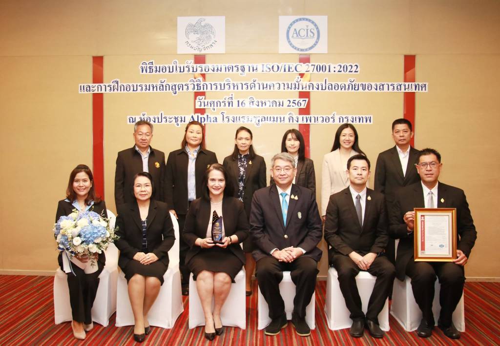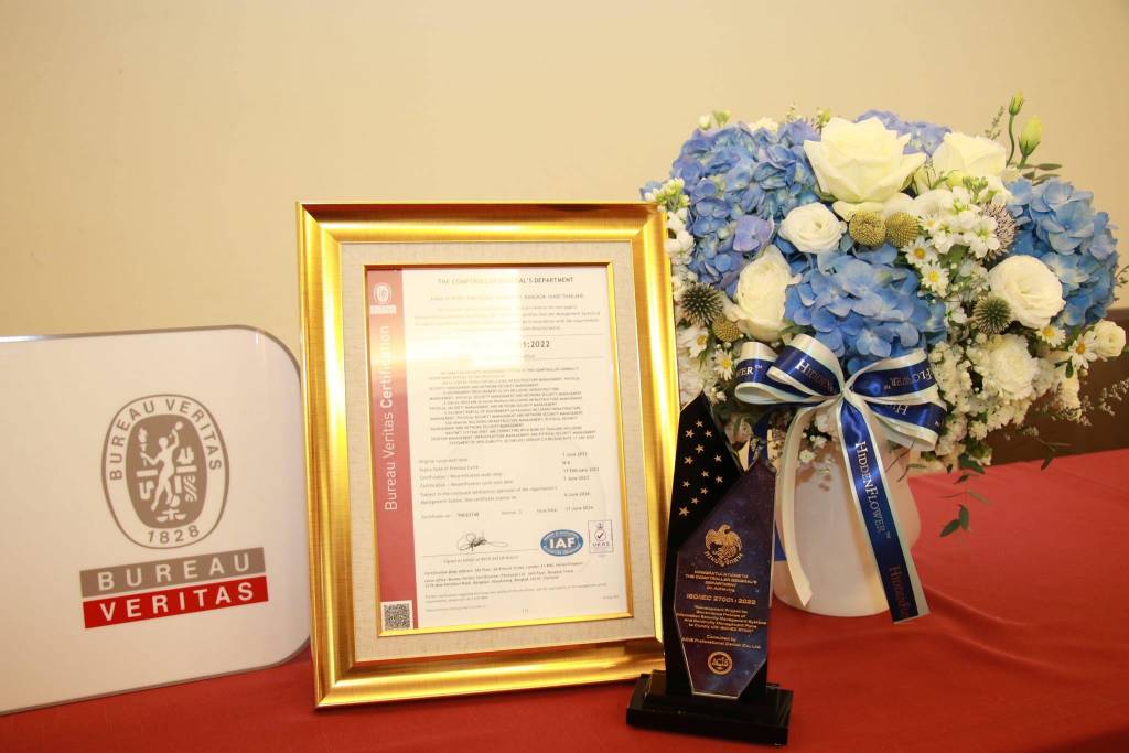 ได้รับมอบใบรับรองมาตรฐาน ISO/IEC 27001:2022เมื่อวันที่ 16 สิงหาคม พ.ศ. 2567 ณ โรงแรม พูลแมน บางกอก คิงพาวเวอร์ กรุงเทพ.โดยมีคุณแพตริเซีย มงคลวนิช (อธิบดีกรมบัญชีกลาง) และคุณกุลเศขร์ ลิมปิยากร (รองอธิบดีกรมบัญชีกลาง) เป็นผู้รับมอบประกาศนียบัตรรับรองมาตรฐาน ISO/IEC 27001:2022