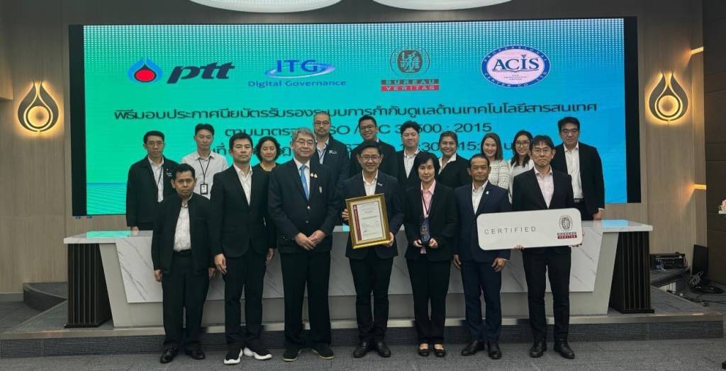ขอแสดงความยินดีกับ บริษัท ปตท. จำกัด (มหาชน) ที่ทุ่มเททำงานอย่างวิริยะอุตสาหะจนได้รับประกาศนียบัตรรับรองระบบการกำกับดูแลด้านเทคโนโลยีสารสนเทศ ตามมาตรฐาน ISO/IEC 38500:2015 Information technology — Governance of IT for the organization