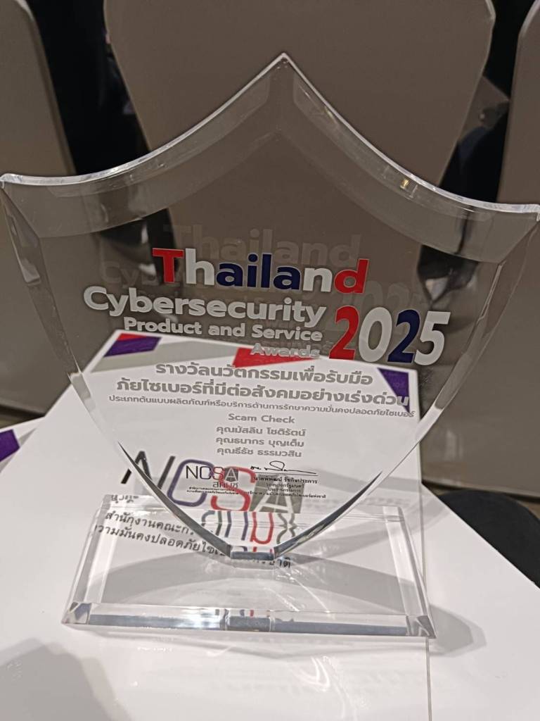 พิธีมอบรางวัลจัดขึ้นโดย สำนักงานคณะกรรมการการรักษาความมั่นคงปลอดภัยไซเบอร์แห่งชาติ (สกมช.) เมื่อวันที่ 23 ธันวาคม 2568 โดย Scam Check Thailand ได้รับรางวัลในประเภท ต้นแบบผลิตภัณฑ์หรือบริการ (Prototype) สาขา นวัตกรรมเพื่อรับมือภัยไซเบอร์ที่มีผลกระทบต่อสังคมอย่างเร่งด่วน (Cyber Threat Mitigation Innovation Award)