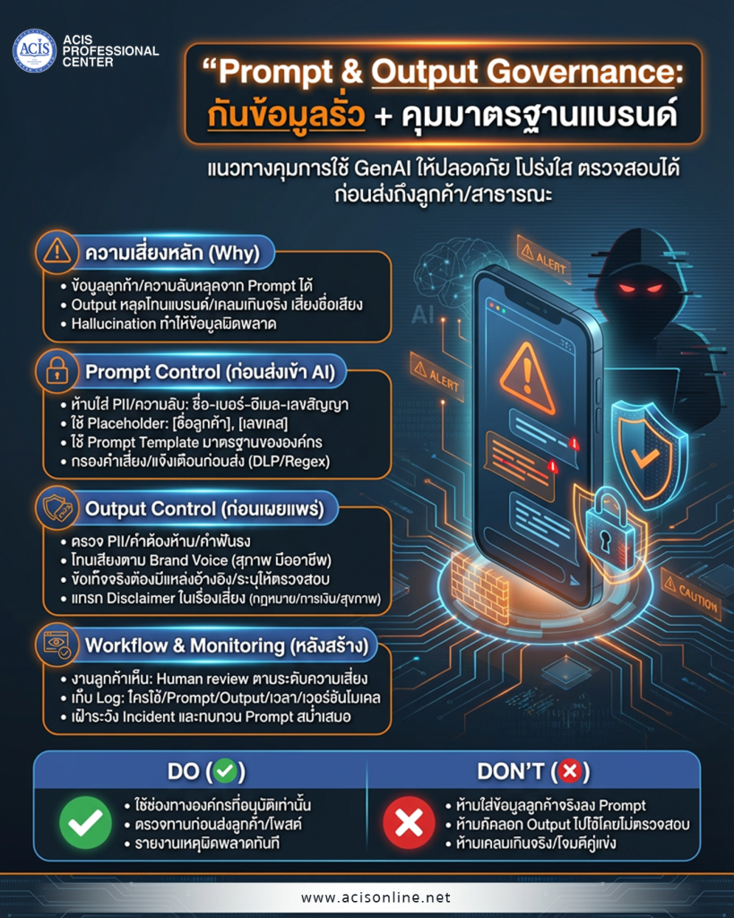 Prompt & Output Governance: คุมยังไงให้ไม่หลุดข้อมูล/ไม่หลุดมาตรฐานแบรนด์