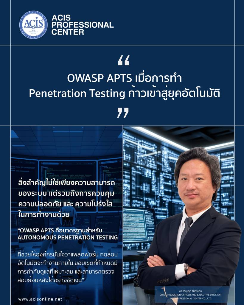 เมื่อโลกความมั่นคงปลอดภัยไซเบอร์เริ่มขยับจากการทดสอบแบบดั้งเดิมไปสู่ Autonomous Penetration Testing หรือการทดสอบเจาะระบบด้วยแพลตฟอร์มอัตโนมัติ คำถามสำคัญจึงไม่ใช่แค่ว่า “ระบบนี้เก่งแค่ไหน” แต่คือ “ระบบนี้ปลอดภัย โปร่งใส และควบคุมได้หรือไม่” นี่คือเหตุผลที่ OWASP APTS หรือ OWASP Autonomous Penetration Testing Standard ถูกพัฒนาขึ้นมาในฐานะมาตรฐานด้าน governance สำหรับแพลตฟอร์มลักษณะนี้โดยเฉพาะ