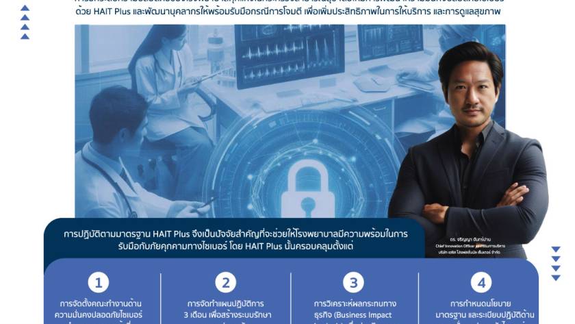 การปฏิบัติตามมาตรฐาน HAIT Plus จึงเป็นปัจจัยสำคัญที่จะช่วยให้โรงพยาบาลมีความพร้อมในการรับมือกับภัยคุกคามทางไซเบอร์ โดย HAIT Plus นั้นครอบคลุมตั้งแต่