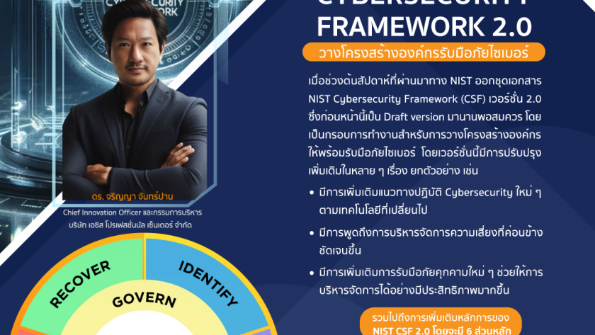 เมื่อช่วงต้นสัปดาห์ที่ผ่านมาทาง NIST ออกชุดเอกสาร NIST Cybersecurity Framework (CSF) เวอร์ชั่น 2.0 ซึ่งก่อนหน้านี้เป็น Draft version มานานพอสมควร โดยเป็นกรอบการทำงานสำหรับการวางโครงสร้างองค์กรให้พร้อมรับมือภัยไซเบอร์ โดยเวอร์ชั่นนี้มีการปรับปรุง เพิ่มเติมในหลาย ๆ เรื่อง ยกตัวอย่าง เช่น.